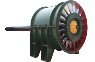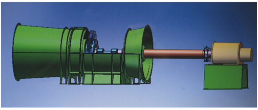 2.风机采用单电机驱动,电机通过长轴安装在风机外面,这种安装方式特别适合大型矿井前后期使用功率差别大的特点,风机设计不受电机尺寸限制,根据需要使用不同的电机,节约能源,更换方便。