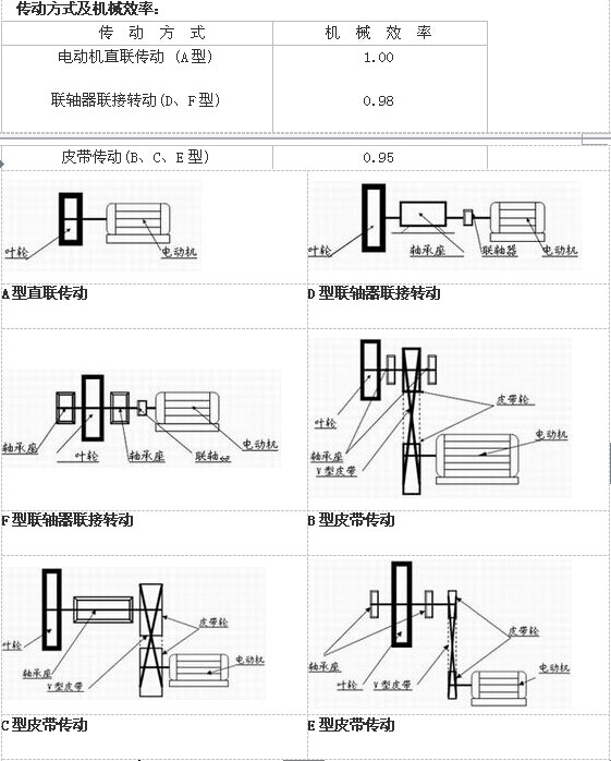 注:0.8是风机效率,是一个变数,0.98是一个机械效率也是一个变数(A型为1,D、F型为0.98,C、B型为0.95)