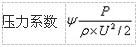 ψ=压力系数、P=全压(Pa)、ρ=气体密度(Kg/m3)、U=叶轮外缘园周速度(m/s)。
