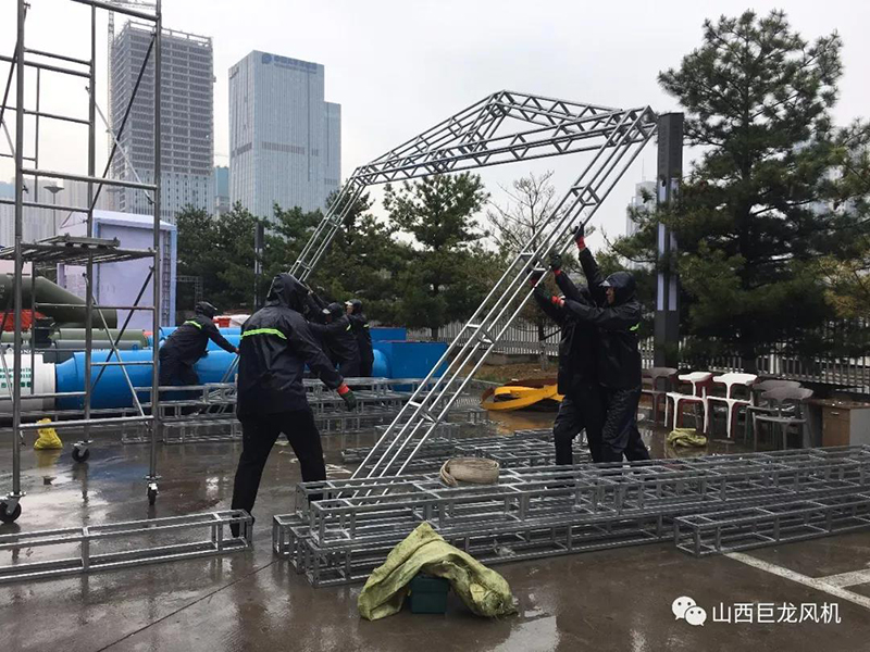 常言道:贵人出门遇风雨,黄金雨露洒人间。在抵达太原展会区,天空雨水绵绵,我公司参展的将士们冒雨布展,虽然雨水淋湿了衣衫,但丝毫没有影响到大家争分夺秒搭建展架的干劲,心里只有一个信念,那就是:必须全力以赴确保参展圆满成功!