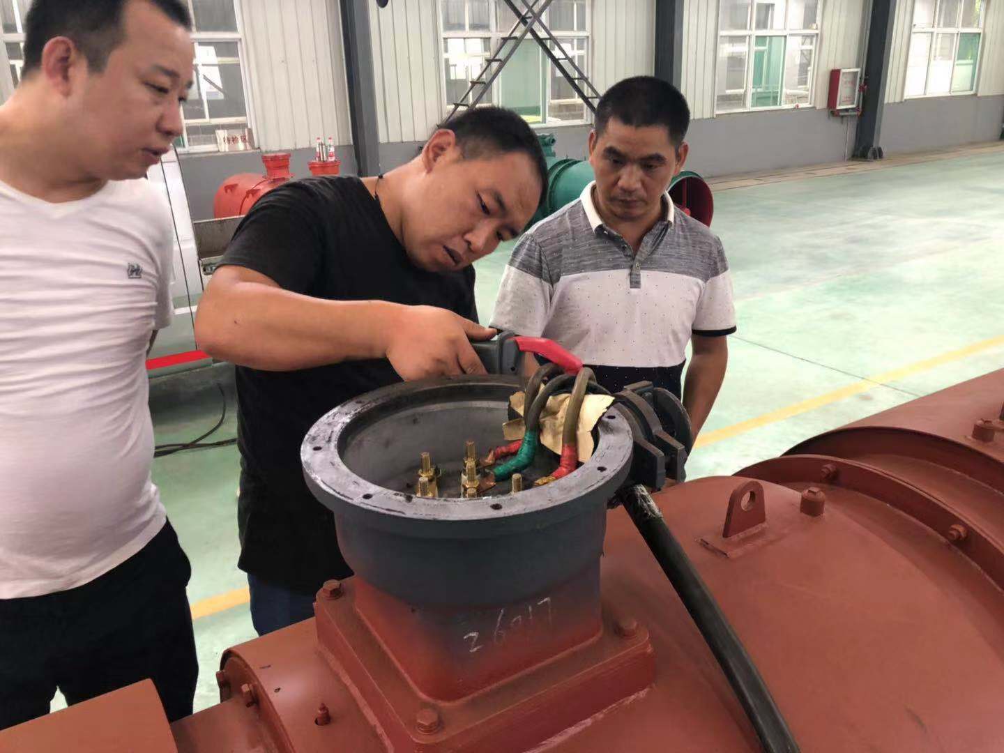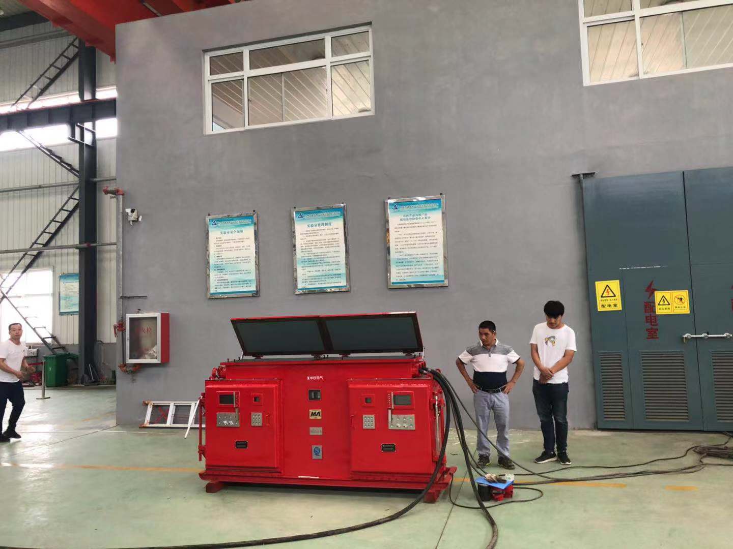8月25日至8月27日,我公司在“山西省通风机产品质量监督检验中心”测试场,针对FBDNO8.0/2*55kw型号的智能局扇通风机电机进行了冷态绝缘现场测试。此次测试环境模拟矿井环境,由原来矿井上两电平拓扑结构,按照测试要求增加到采用三电平拓扑结构,风机送风达到3000米,测试过程中风机电流和温度均正常,降低了PWM脉冲波,从而减少电机绝缘对风机的损伤,经过48小时昼夜不停机的紧张测试,最终达到了安全使用要求,为矿井智能局扇局部通风机的安全使用提供了可靠依据。