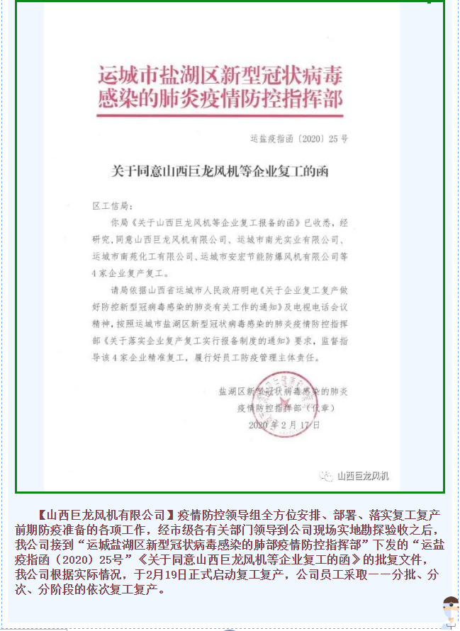 复工复产|【山西巨龙风机有限公司】开足马力,加快生产!