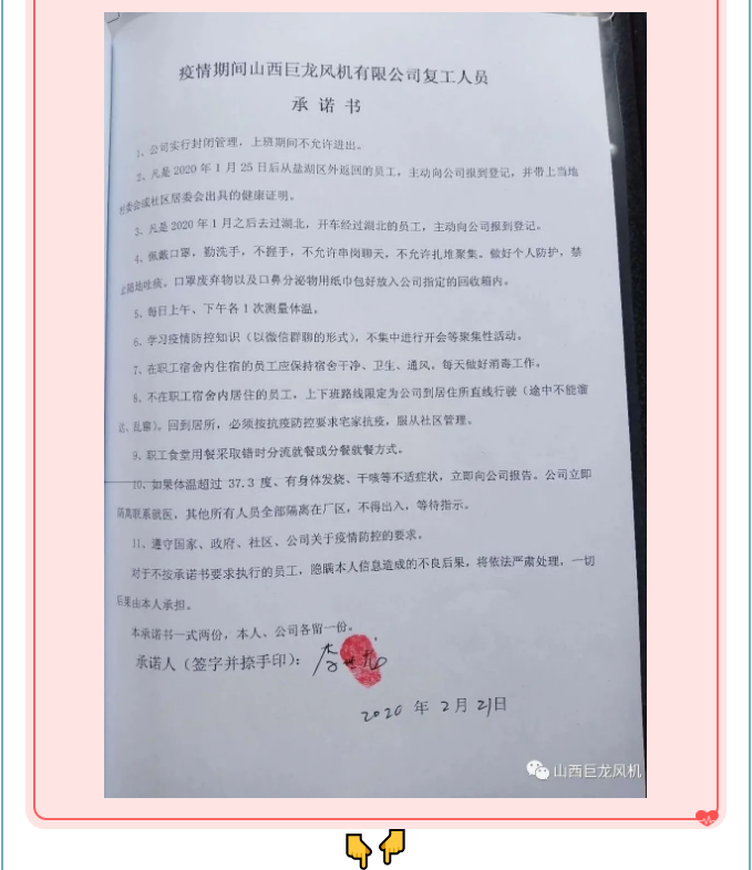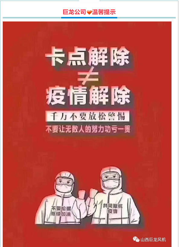 上一篇:《山西巨龙风机有限公司》成立“疫情防控领导小组”为下一步防控工作打下良好基础!